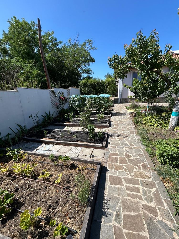 Дворът от 650 м2 е равен и практичен, с достатъчно пространство за озеленяване, детски кът или градинарство. В него са изградени гараж, навес за дърва и приятна беседка за отдих на открито. Локацията съчетава тишина и удобство: на 6 км от гр. Поморие и плажовете, 12 км от к.к. Слънчев бряг и 10 км от летище Бургас. Селото е предпочитано от българи и чуждестранни собственици заради спокойната среда и бързия достъп до основни курортни и градски удобства.