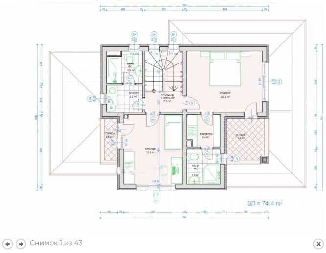 На първия етаж се намират входно антре, просторен хол с отделна кухненска част и трапезария, една спалня, санитарен възел, котелно помещение и веранда. Удобно стълбище води към втория етаж, където са разположени две допълнителни спални, две бани, гардеробна и сервизно помещение, както и две просторни тераси, от които можете да се насладите на спокойствието и красотата на околността.