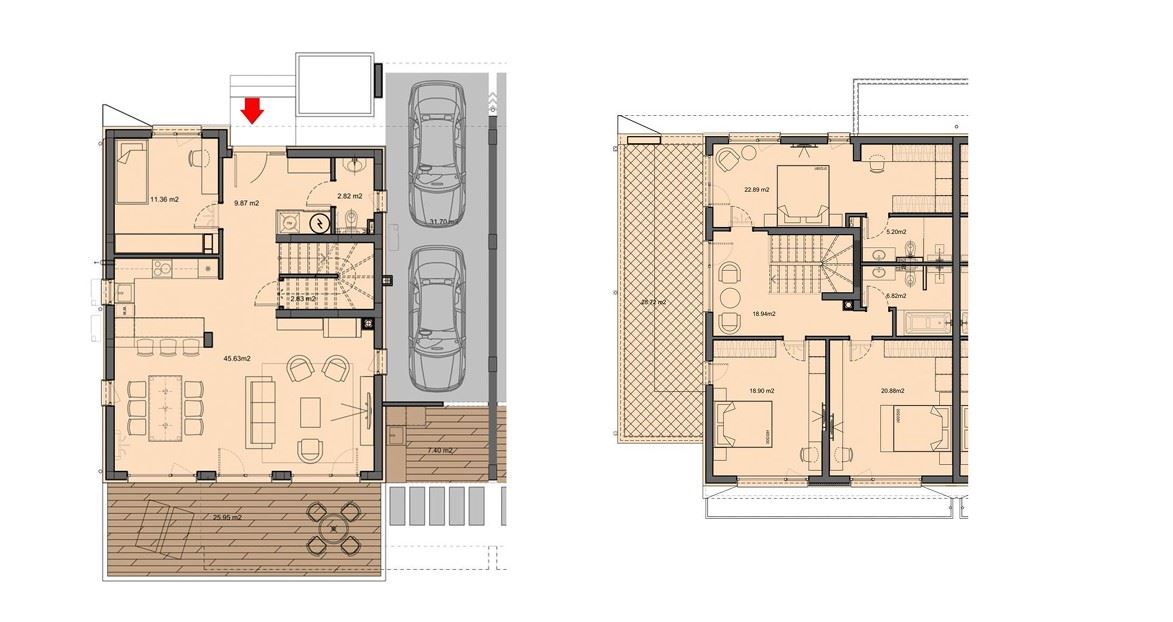 Дворът от 478.75 м² дава свобода за вашия личен почерк – красива градина, детски кът, зона за барбекю или дори възможност за бъдещ малък басейн според предпочитанията ви. Двете паркоместа в парцела добавят удобство за ежедневието и за гостите.