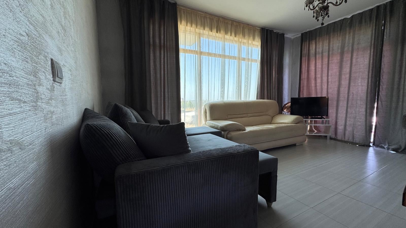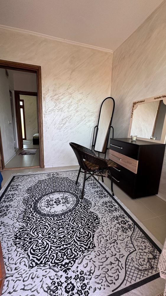 Имотът се предлага напълно обзаведен и оборудван, с внимание към удобството и практичността: готов кухненски бокс, мека мебел в дневната, спални комплекти и гардероби – всичко необходимо, за да се нанесете веднага без допълнителни инвестиции. Панорамните прозорци осигуряват естествена светлина през целия ден, а рационалното разпределение осигурява комфорт в ежедневието.