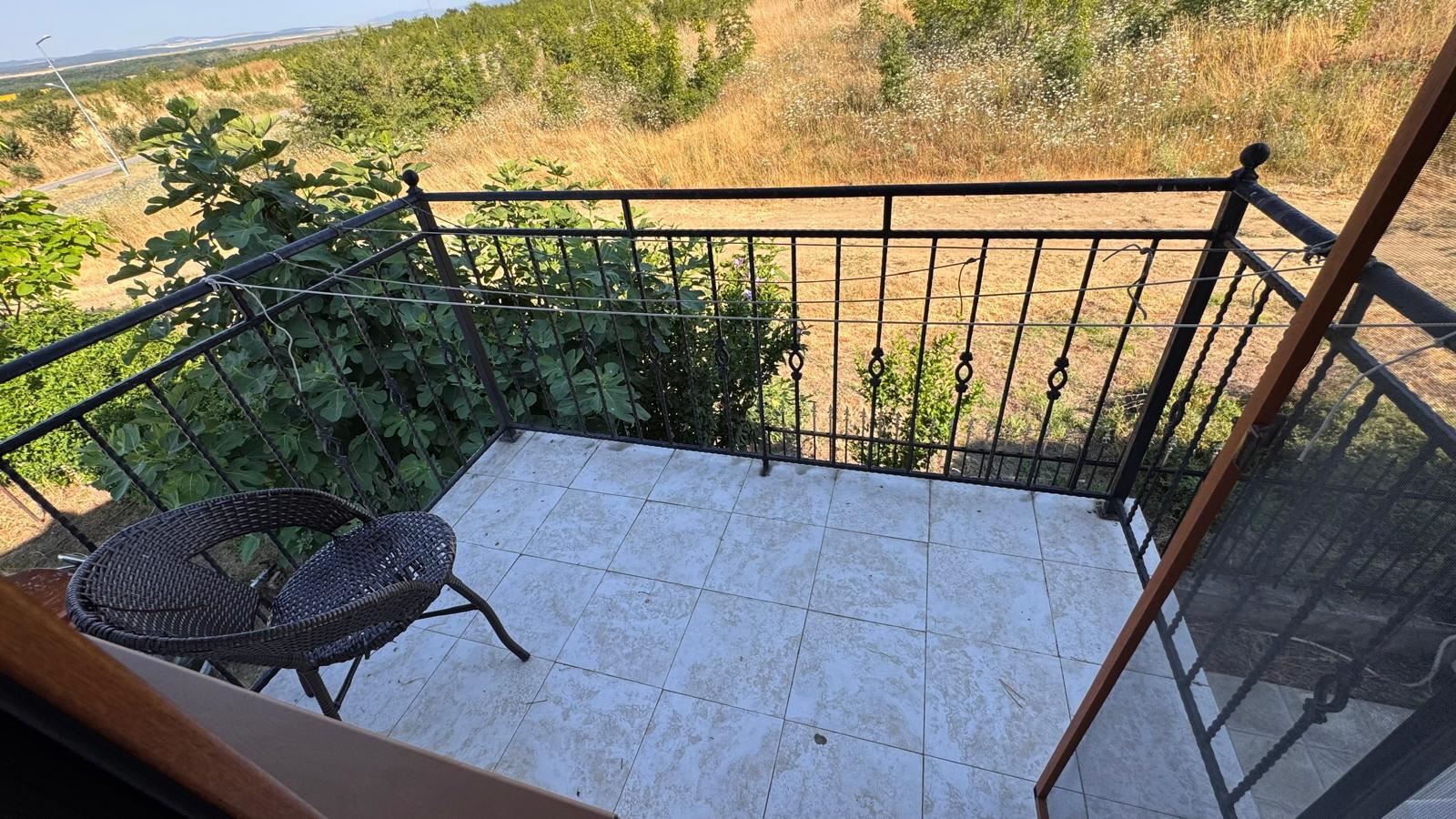 Домът е на два етажа с функционално разпределение и самостоятелен вход. На първо ниво ще откриете просторна дневна с кухненски бокс и трапезария – светло и уютно пространство за семейството и гостите, баня/тоалетна и излаз към балкон. На второ ниво са разположени две комфортни спални, втора баня/тоалетна и втори балкон – идеалният кът за сутрешно кафе или вечерен релакс.