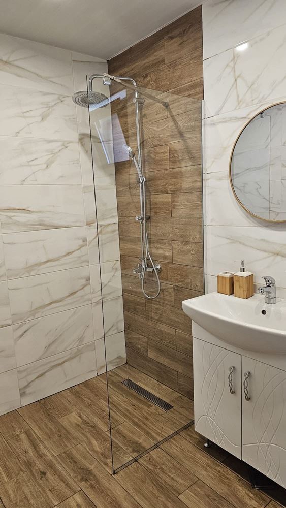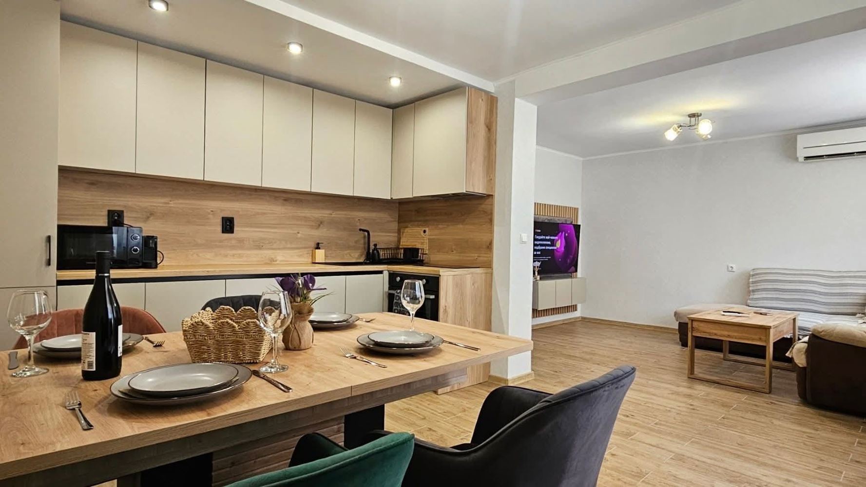 Къщата е изцяло реновирана – с нов покрив, нова топлоизолация, нова дограма, обновени ВиК и електроинсталации, което гарантира удобство и сигурност. Интериорът е модерен и дизайнерски обзаведен, с просторни спални с големи легла, което създава усещане за лукс и комфорт. Отоплението и охлаждането се осигуряват чрез климатици, което позволява приятен микроклимат през цялата година.