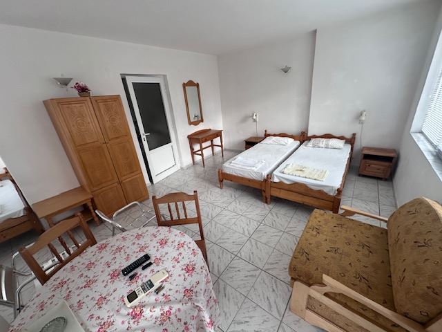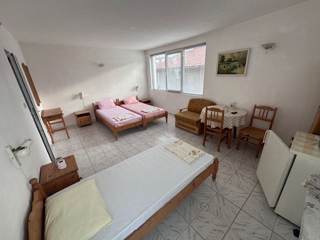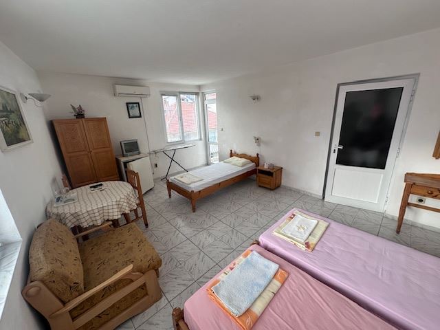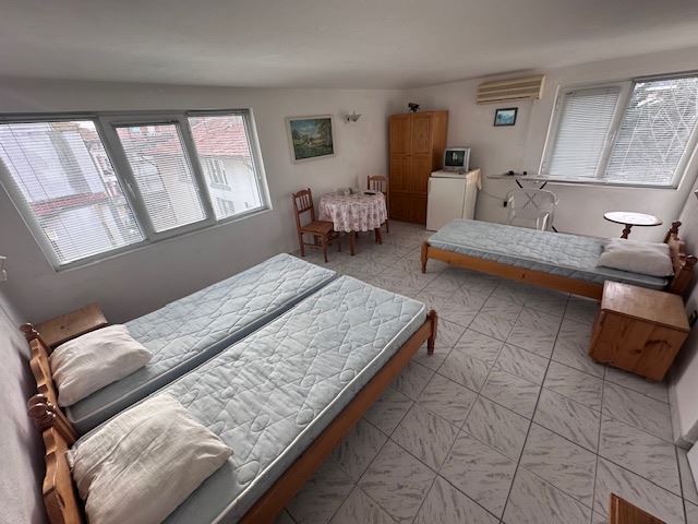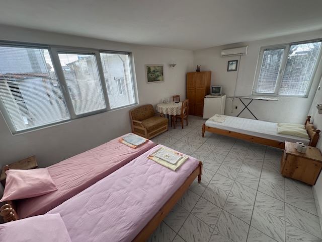 Представяме на вашето внимание впечатляваща къща с обща площ от 205 м2, разположена в сърцето на новия град на Несебър. Имотът се отличава с функционално разпределение на четири етажа, предлагащи комфорт и уединение за цялото семейство или за гостите. Основната сграда включва четири спални, всяка със собствена баня с тоалетна, както и четири тераси, от които се откриват гледки към града и околните пространства.
