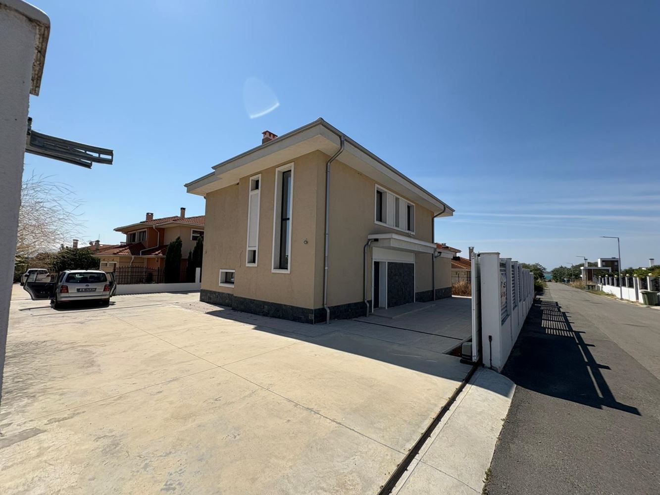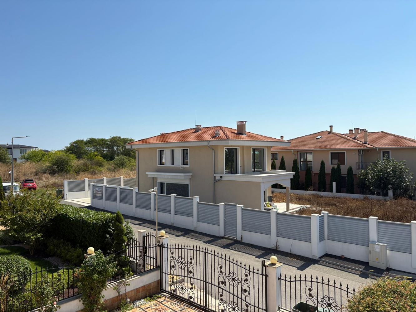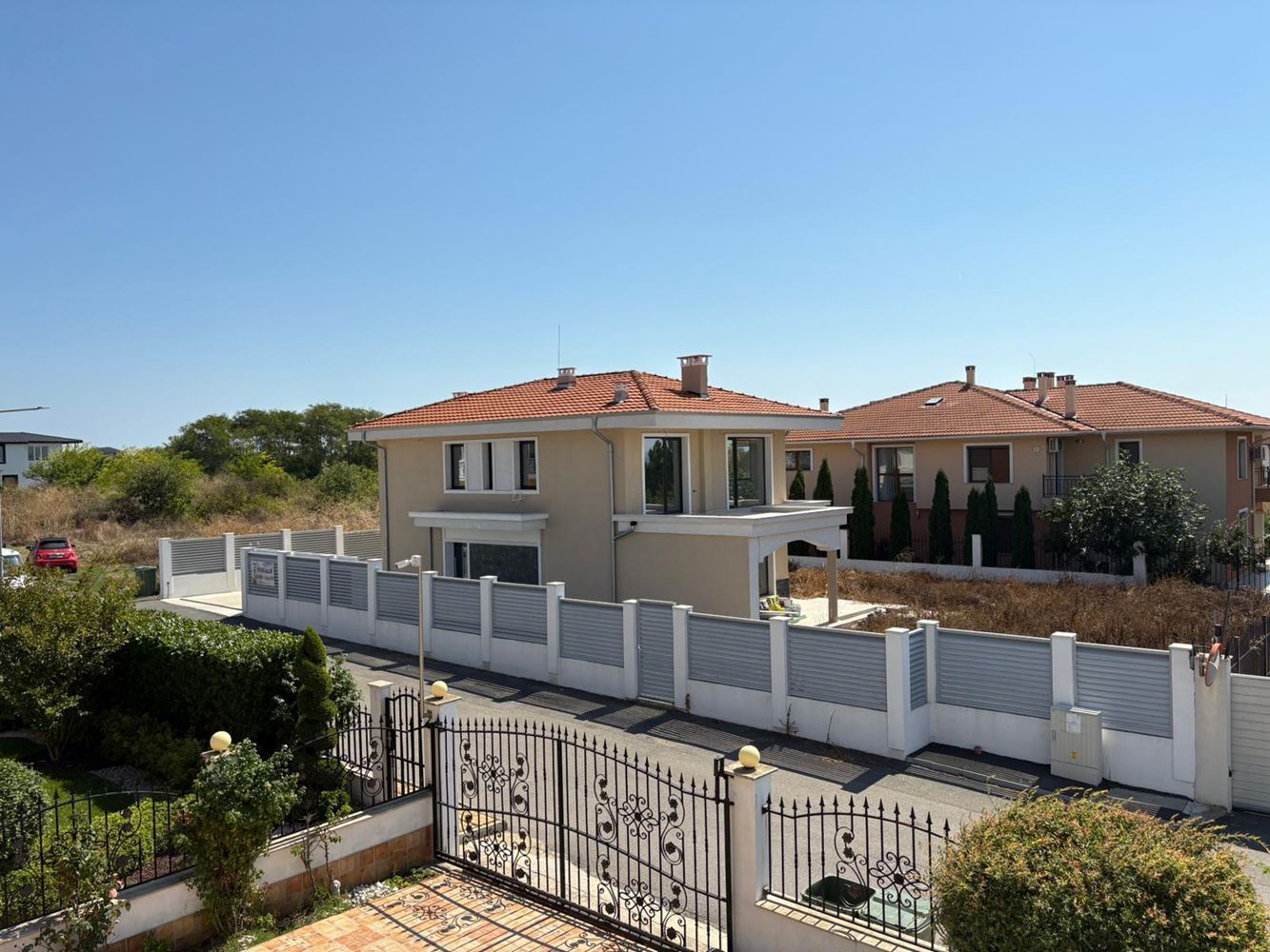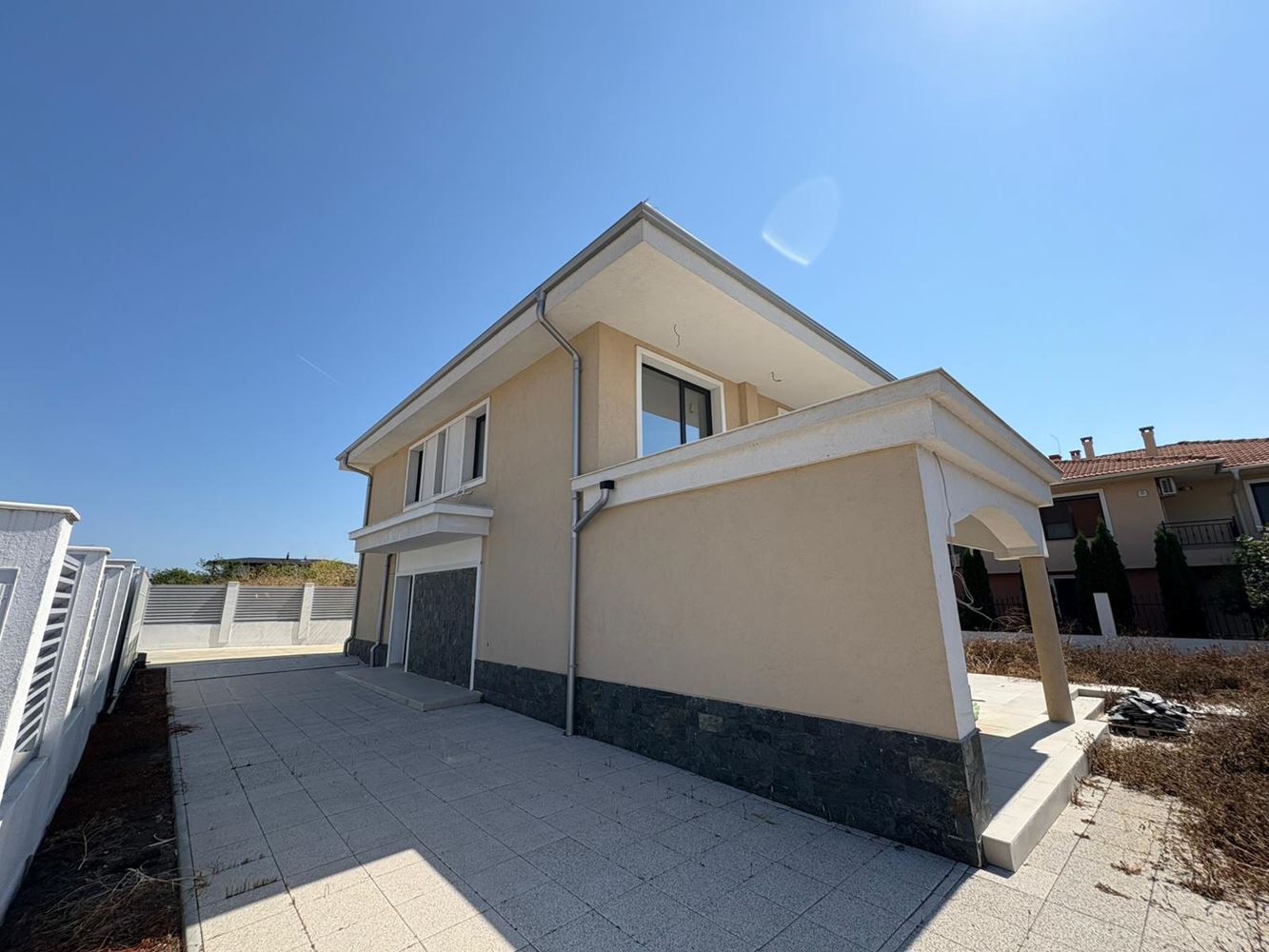 Представяме Ви нова, модерна двуетажна къща, разположена в тиха и зелена зона до кв. Сарафово – едно от най-желаните места за живеене и отдих край Бургас. Имотът предлага изключителна комбинация от съвременен комфорт, собствен просторен двор и близост до морето – само на 300 метра от плажа.