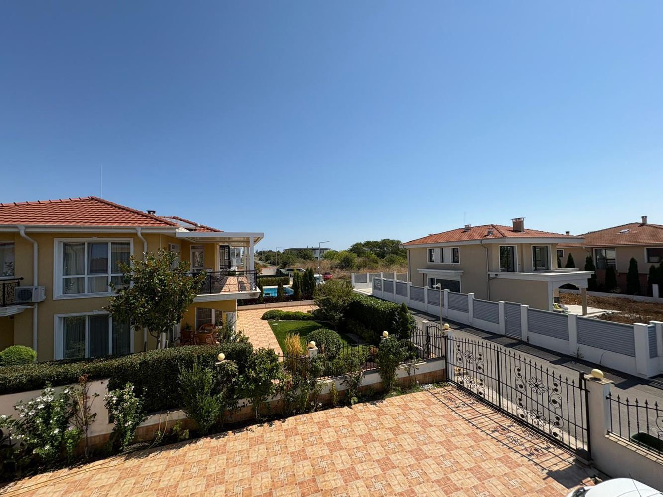 Вторият етаж е обособен като спална зона с три спални, две бани с WC и голяма тераса-балкон, където сутрешното кафе или вечерната почивка ще се превърнат в ритуал на удоволствието.
